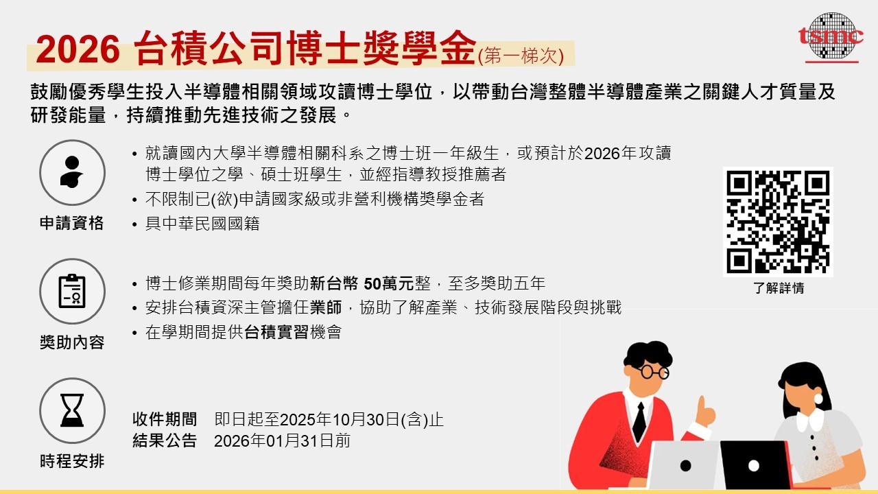 2026 台積公司博士獎學金第一梯次申請開始啦🎊🥳🎉